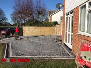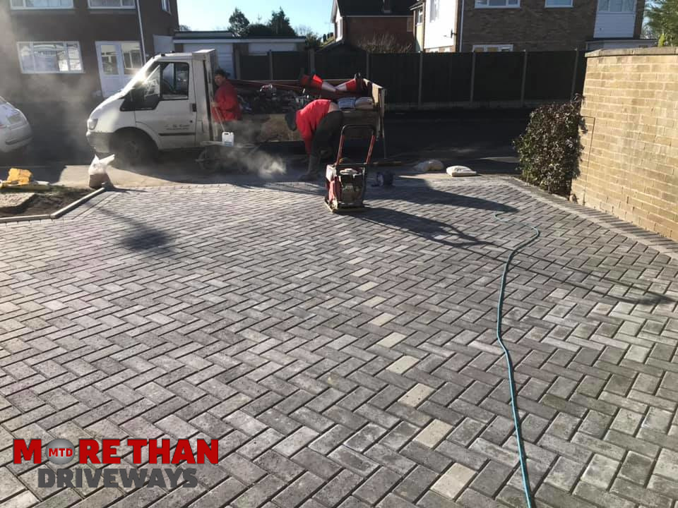 Driveway laid in a charcoal paved brick from Marshalls and a natural grey border around it. Paved diamond apron at the start to the driveway. Call our team today to schedule a free visit from the professionals at More Than Driveways. Unbeatable value!